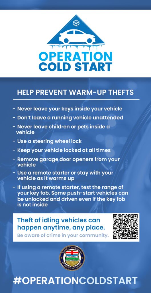 Operation Cold Start is a provincial crime prevention campaign led by law enforcement agencies in Alberta aimed at preventing theft of vehicles left idling and unattended.